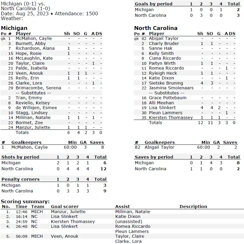 Those were UNC’s only conversion on nine corners in the game, but the Heels outshot the Wolverines 12–6.