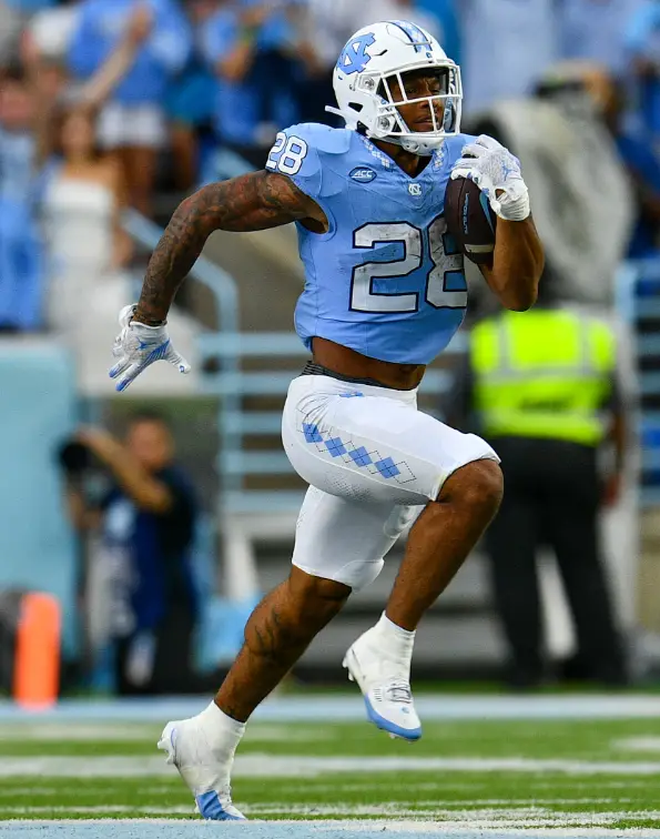 In the finest rushing game since Michael Carter and Javonte Williams departed for the NFL, Hampton ran for 234 yards and three touchdowns, one in the first overtime, as No. 17 UNC held on for a 40–34 double-overtime victory over Appalachian State on Saturday night at Kenan Stadium.