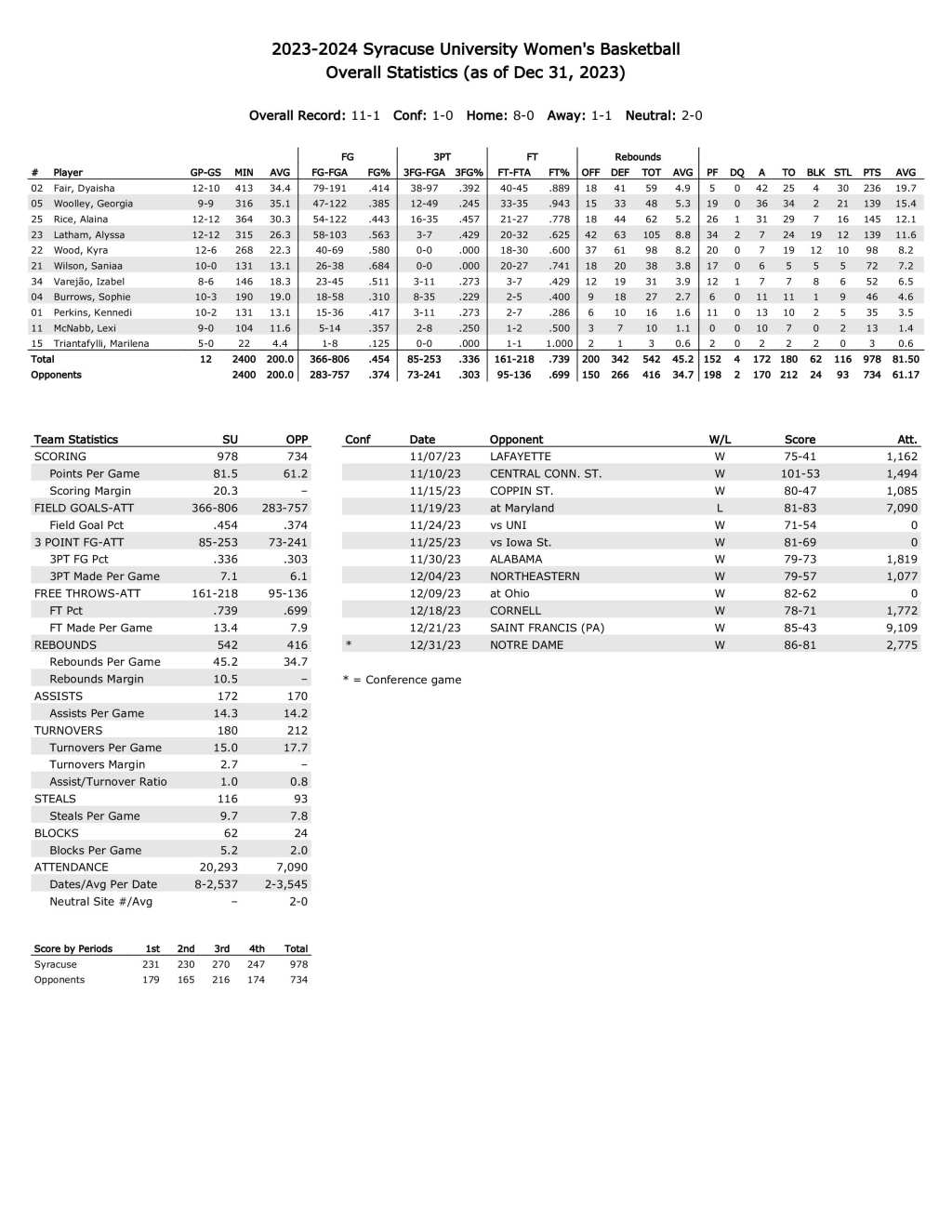 Syracuse season statistics