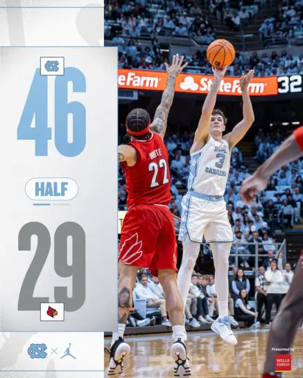 NOTES — Carolina visits Boston College (11–6, 2–4) at 2:15 Saturday (The CW). It will be the Eagles’ first game since beating Notre Dame 63–59 on Monday to snap a two-game losing streak. … This is UNC’s first 6–0 ACC start since starting the 2015–16 league season 8–0. … Carolina has won five consecutive meetings with Louisville and leads the all-time series 20–7, including 4–0 under Coach Davis and 6–1 at the Smith Center. … Carolina is 8–2 starting Davis, Cadeau, Ryan, Ingram and Bacot. … Wednesday’s game was UNC’s last regular season 9 p.m. game and the first time it has played consecutive home games since beating Tennessee on Nov. 29 and Florida State on Dec. 2. … Jenna Reneau was one of the three referees for the game. She’s worked 24 NBA games since 2021, including seven this season.