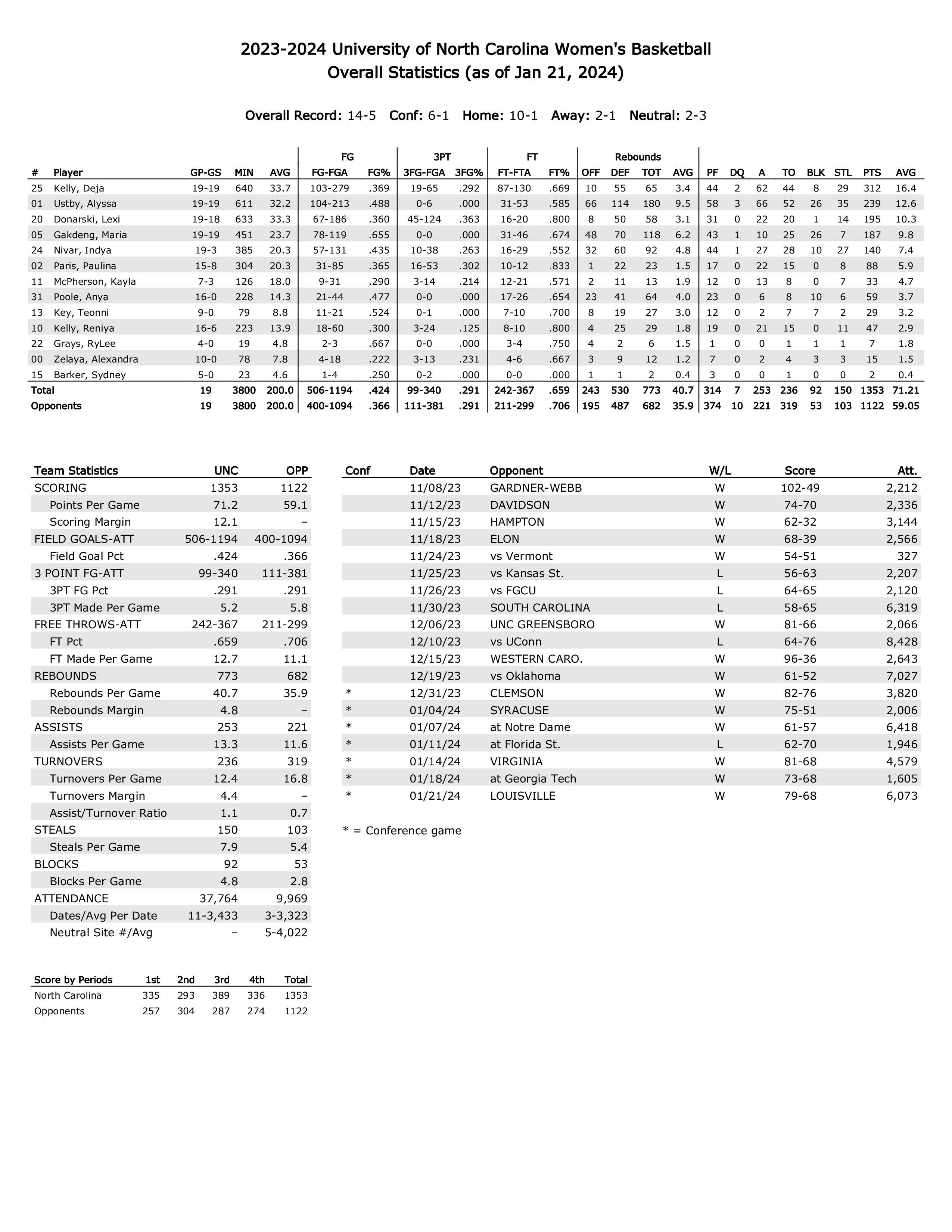 UNC season statistics