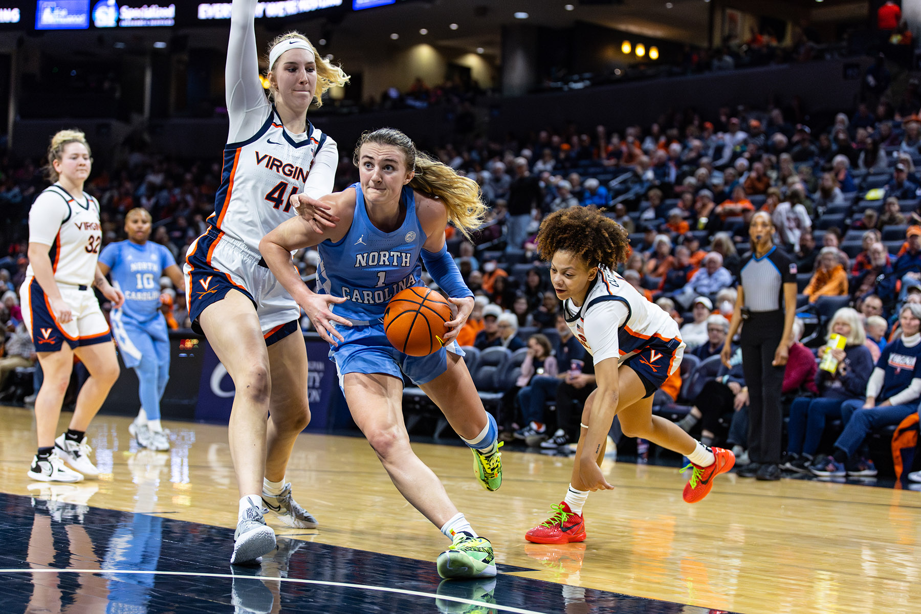 Four 3-pointers, two from Brunelle, sparked a 21–5 Cavaliers run to end the first half. Virginia took a one-point lead run on Cady Pauley’s 3 with 3:09 left in the first half. Two Maria Gakdeng inside buckets were UNC’s only field goals in the last 7:51 of the first half, and Virginia led 37–34 at halftime.