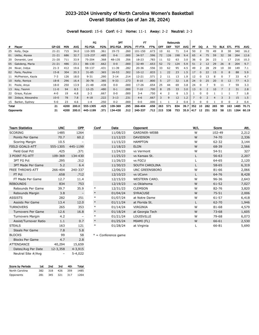 UNC season statistics