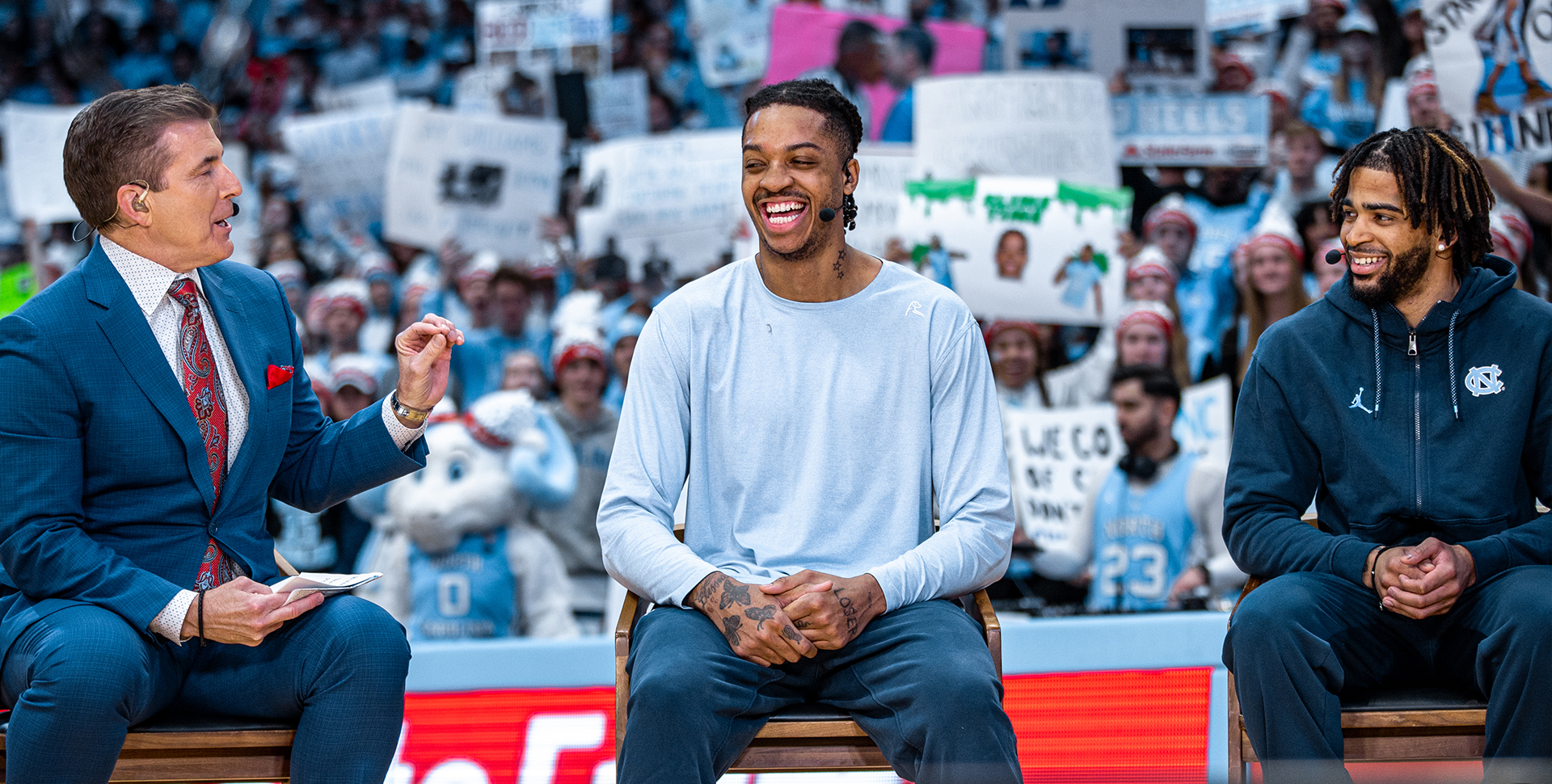 In the last 15 minutes of the show, Davis, Williams and Bilas moved from the set to chairs at one side of the court to interview UNC’s RJ Davis and Armando Bacot.