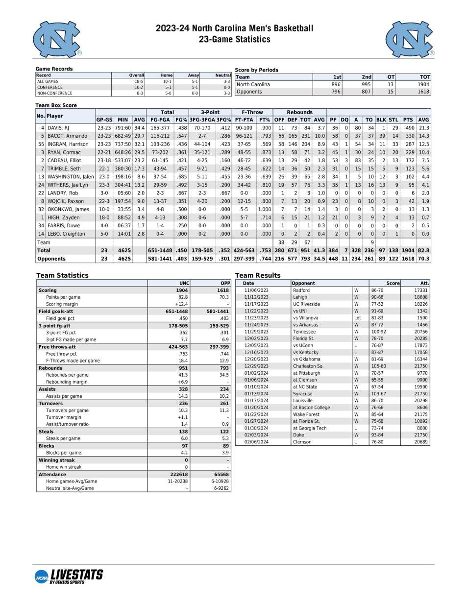 Back-to-back 3s from Davis and Ingram in the final 65 seconds cut UNC’s halftime deficit to 43–34, and a 7–3 run to start the second half cut the deficit to five. Two Davis 3-pointers in an 8–2 run sliced the lead to two with 14:28 left.