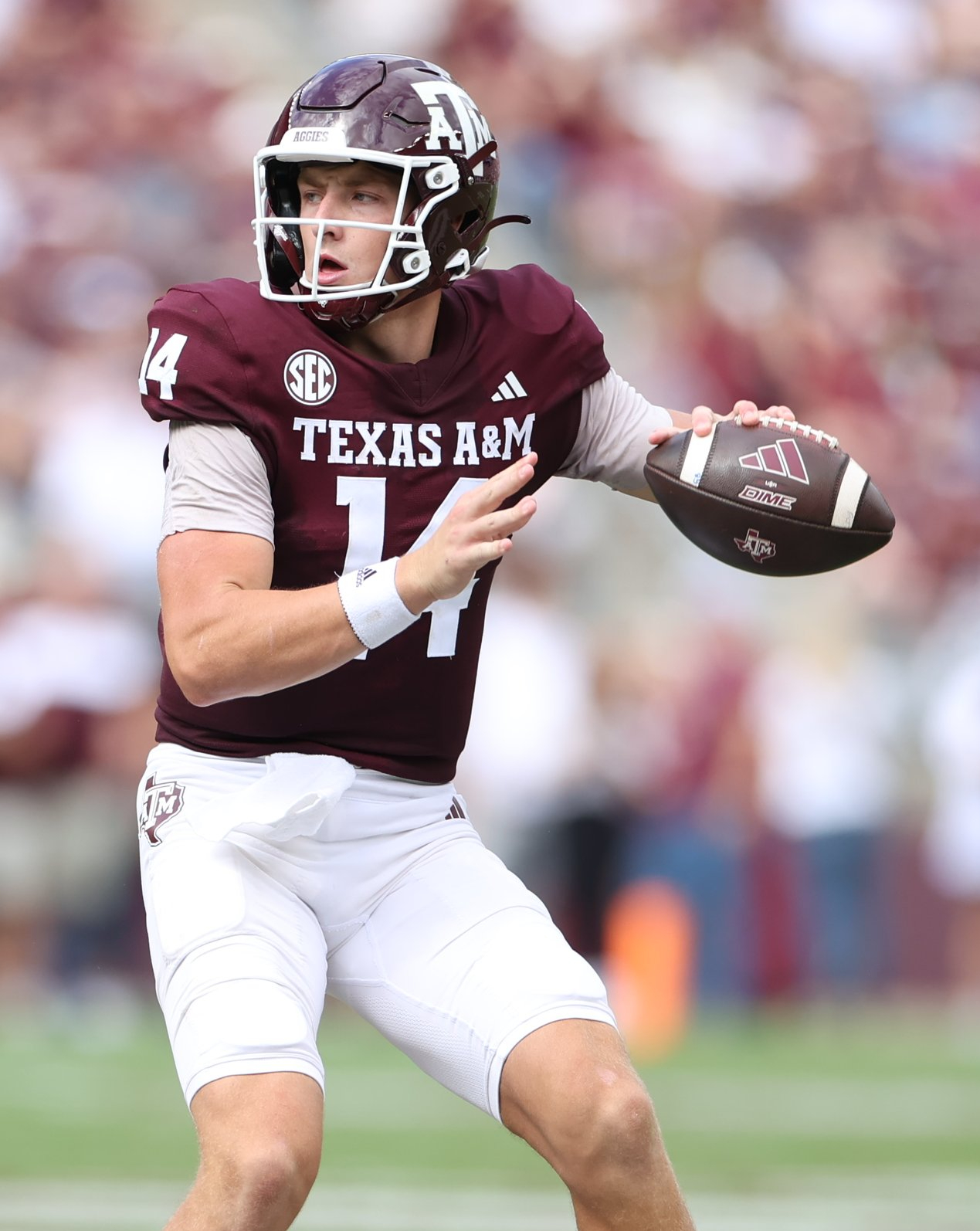 He threw multiple touchdown passes only twice at Texas A&M — in the Auburn game and one week later on Sept. 30 with 210 passing yards in a 34–22 win over Arkansas at AT&T Stadium in Dallas.