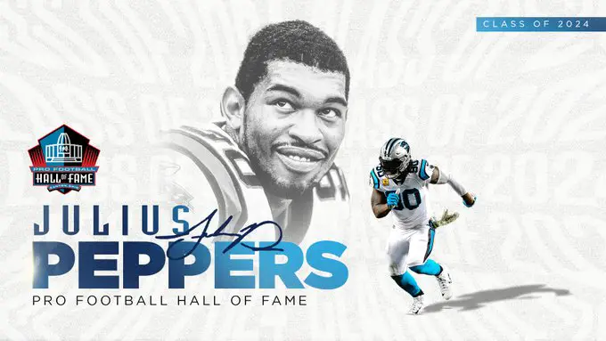 “Julius Peppers’ dedication to football at every level epitomizes what a Hall of Famer should be, and we congratulate him wholeheartedly on this much-deserved honor,” UNC athletics director Bubba Cunningham said. “He is not only one of the greatest to play football at Carolina, but also one of the greatest to play the game, period. We applaud and appreciate his talent, his generosity, and his legacy.”