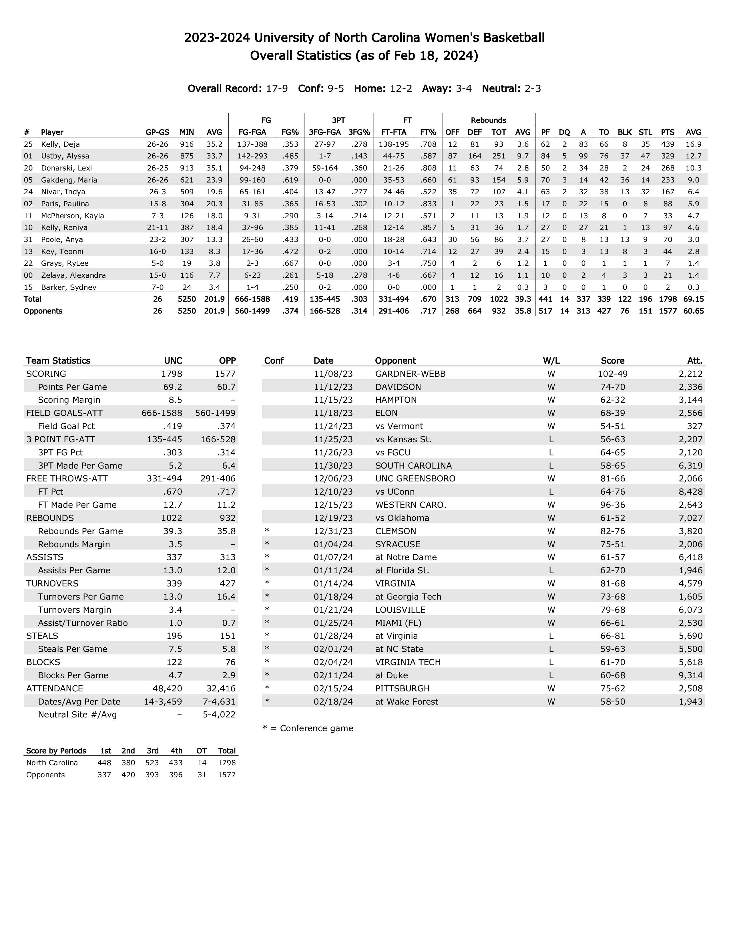 Carolina could have easily won their first meetings with State and Virginia Tech with a few plays going differently. Unlike in both the 63–59 road loss Feb. 1 to the Pack and the 70–61 overtime setback against the Hokies in Chapel Hill on Feb. 4, though, Reniya Kelly might not play in the rematches.