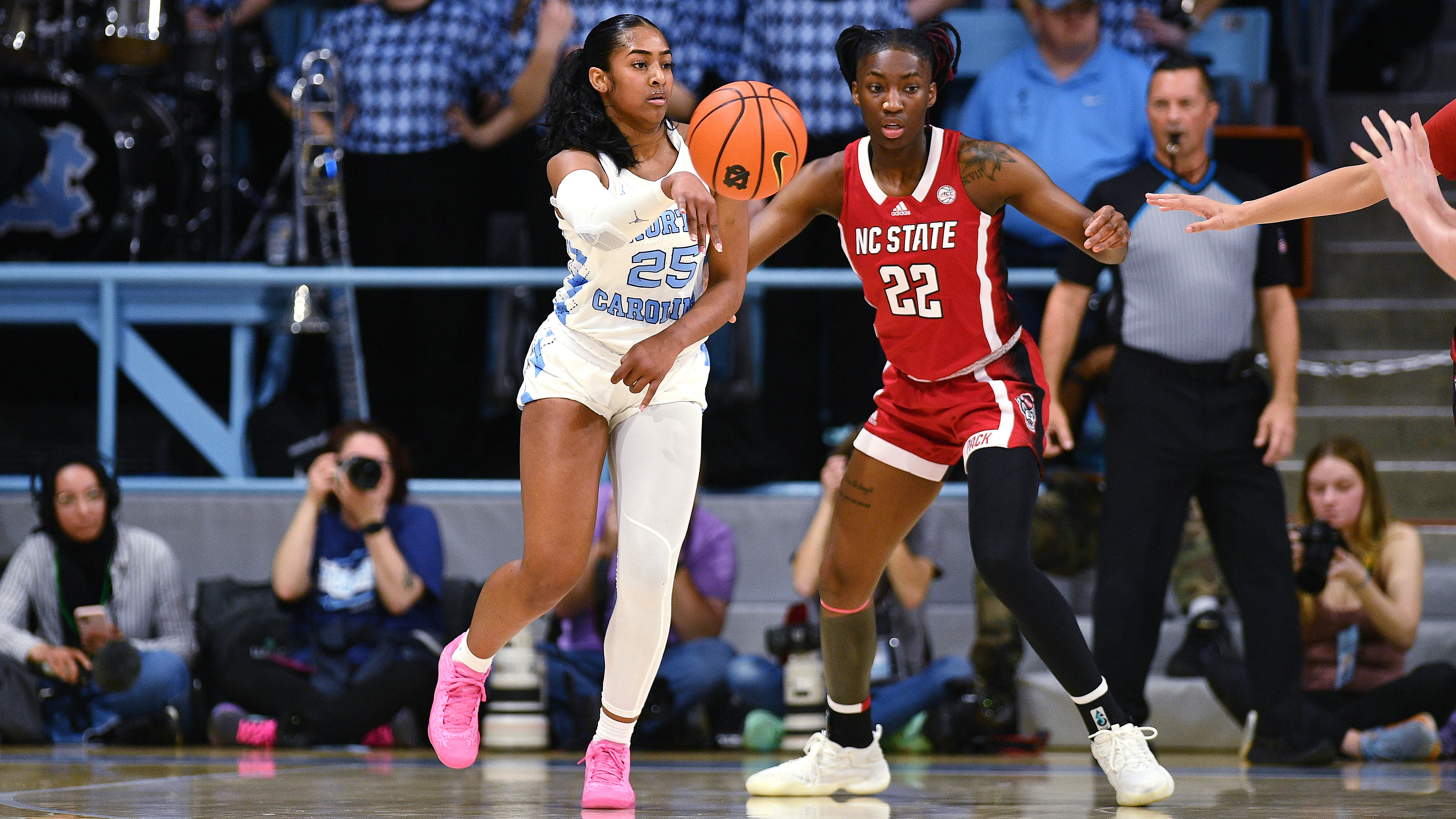 Back-to-back 3-pointers from Aziaha James (game-high 24 points, four 3-pointers and nine rebounds) and Saniya Rivers (13 points, three 3-pointers and five rebounds) gave State a seven-point lead with 5:46 left in the first quarter. A 3-pointer from Nivar and two from Zelaya, one at the shot-clock buzzer, cut UNC’s deficit to two with 2:15 left.