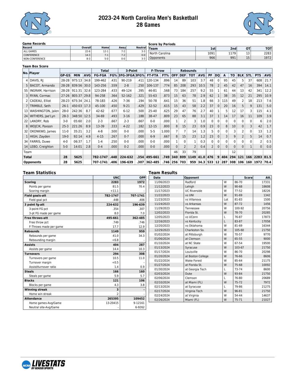 Carolina (22–6, 14–3 ACC) has already clinched no worse than the No. 2 seed in the ACC tournament at Washington’s Capital One Arena, playing its first game on Thursday, March 14, in the quarterfinals at either noon (if it is the No. 1 seed) or 7 p.m. (if it is the No. 2 seed).