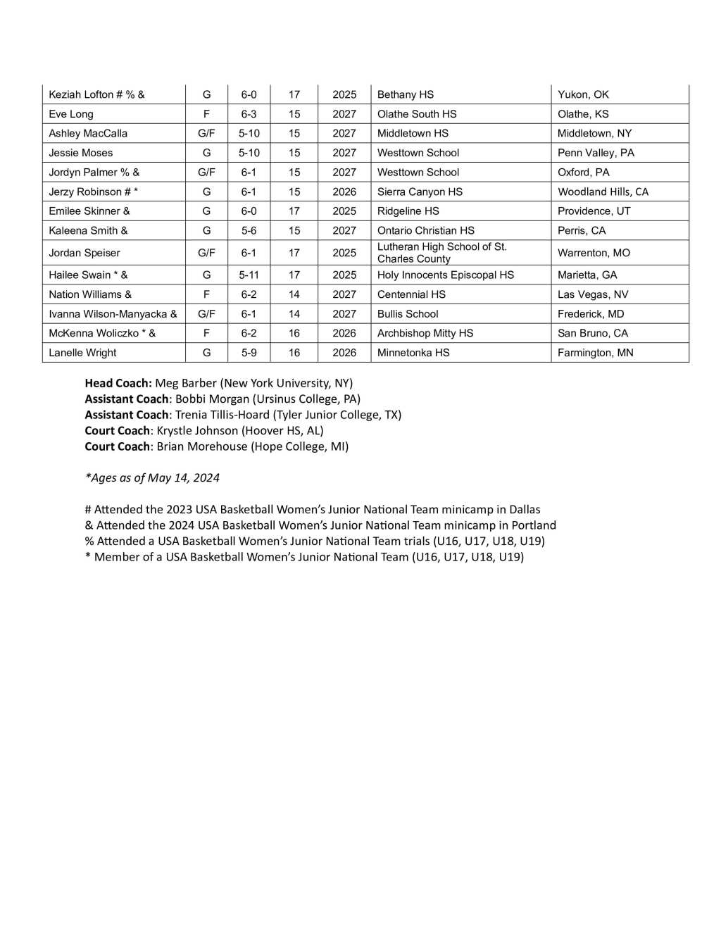 The tryouts to pick the 12-member USA Basketball Women’s U17 National team begin on May 23 at the U.S. Olympic and Paralympic Training Center in Colorado Springs. Meg Barber of New York University will be the head coach.