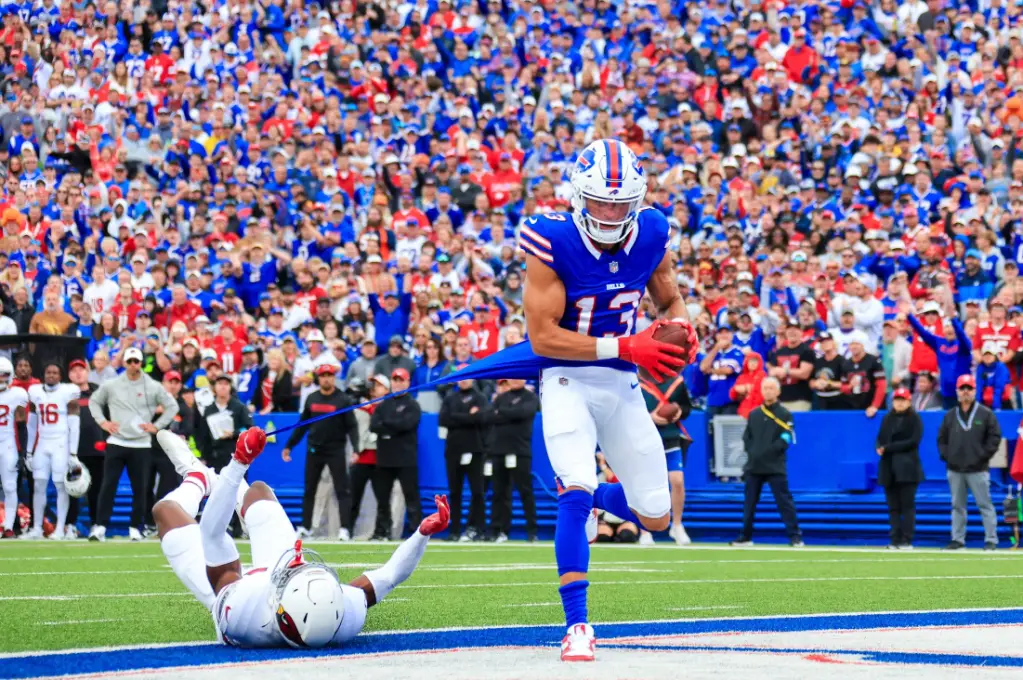 After the veteran wide receiver went from four touchdown passes two seasons ago for Las Vegas to no touchdown passes last season for the Falcons, Hollins snagged one in the Bills’ victory over Arizona for the 11th scoring reception of his career.