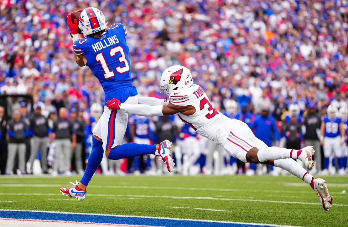 After the veteran wide receiver went from four touchdown passes two seasons ago for Las Vegas to no touchdown passes last season for the Falcons, Hollins snagged one in the Bills’ victory over Arizona for the 11th scoring reception of his career.