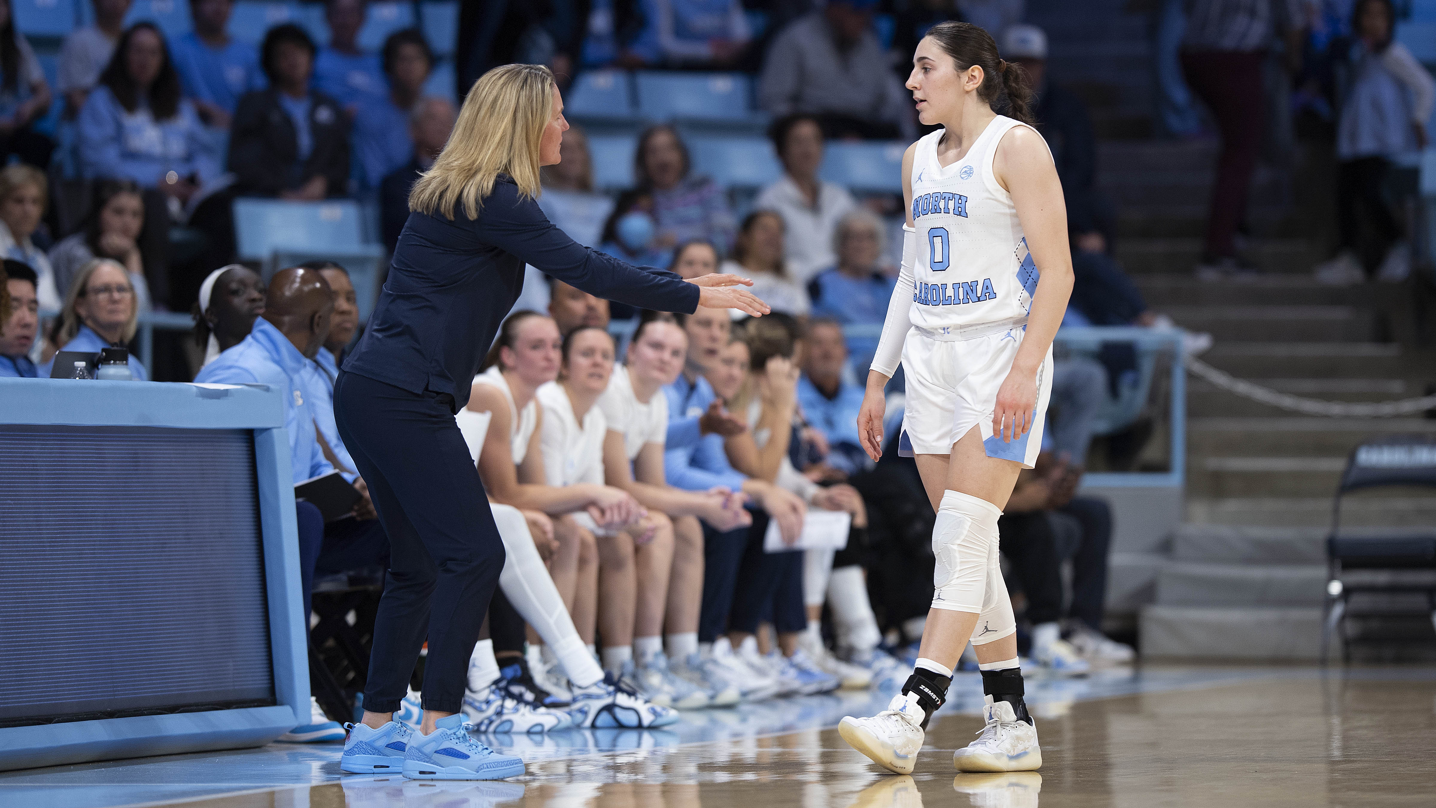 Later in the first quarter, freshman Jordan Zubich (2 points, 1 rebound) checked in for Kelly for her college debut, meaning all five players were playing their first UNC games. Redshirt freshman Laila Hull (5 points, 1 3-pointer, 3 rebounds, 2 assists) made her UNC debut early in the second quarter.