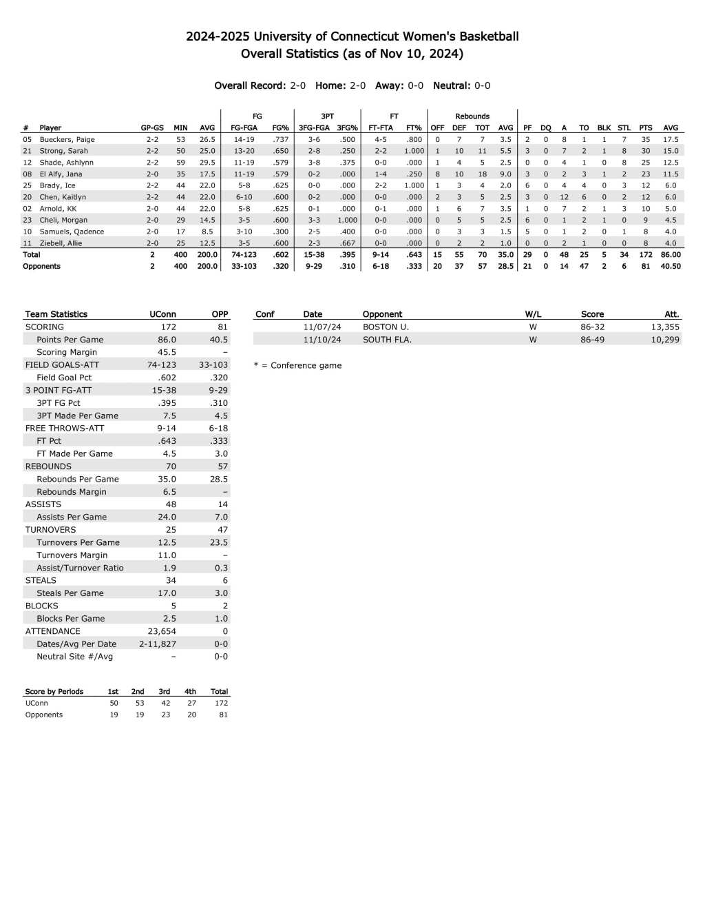 Strong, who had UNC among the final three schools she was considering before picking UConn, will be another formidable player to stop. North Carolina’s first No. 1 national recruit, who played at Grace Christian School, is averaging 15 points, 5.5 rebounds and four steals.