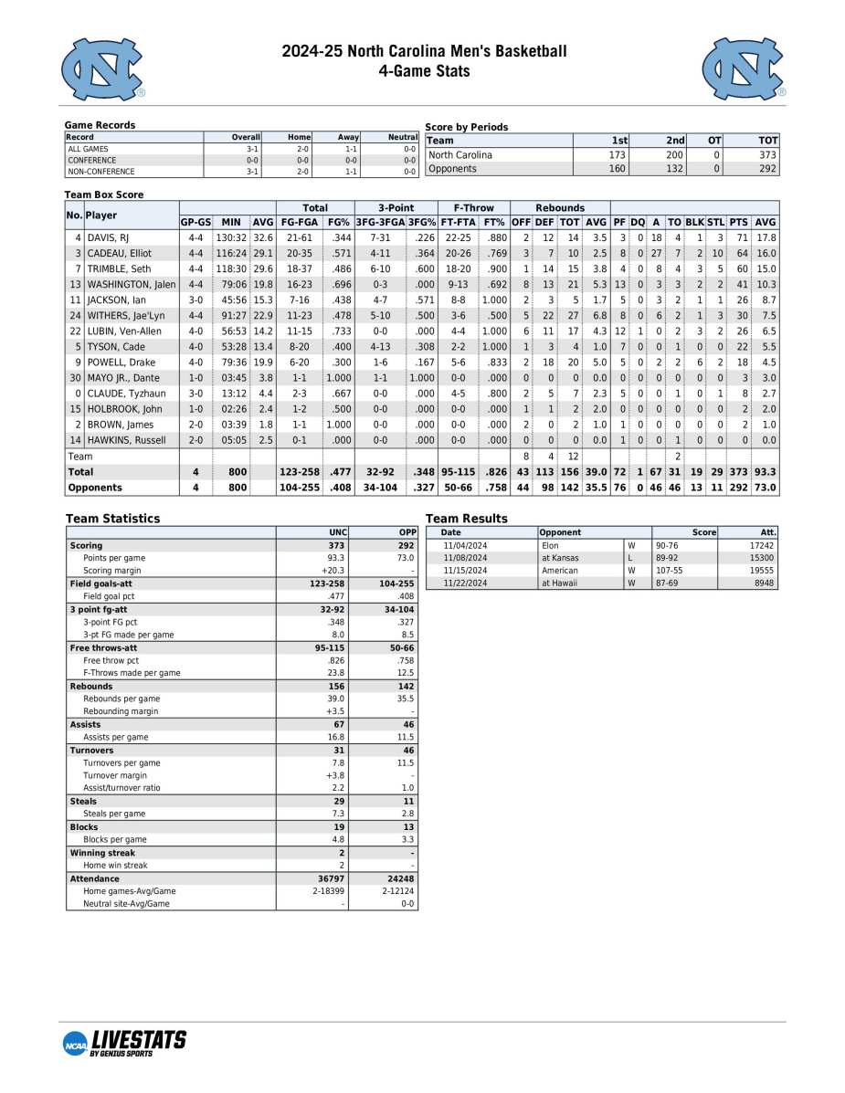 There are no easy games at this event in paradise, with Division III Chaminade no longer participating. Carolina (3–1) is a victim of poor bracket seeding since, win or lose Monday, the Tar Heels will play either No. 4 Auburn (4–0) or No. 5 Iowa State (3–0) on Tuesday.