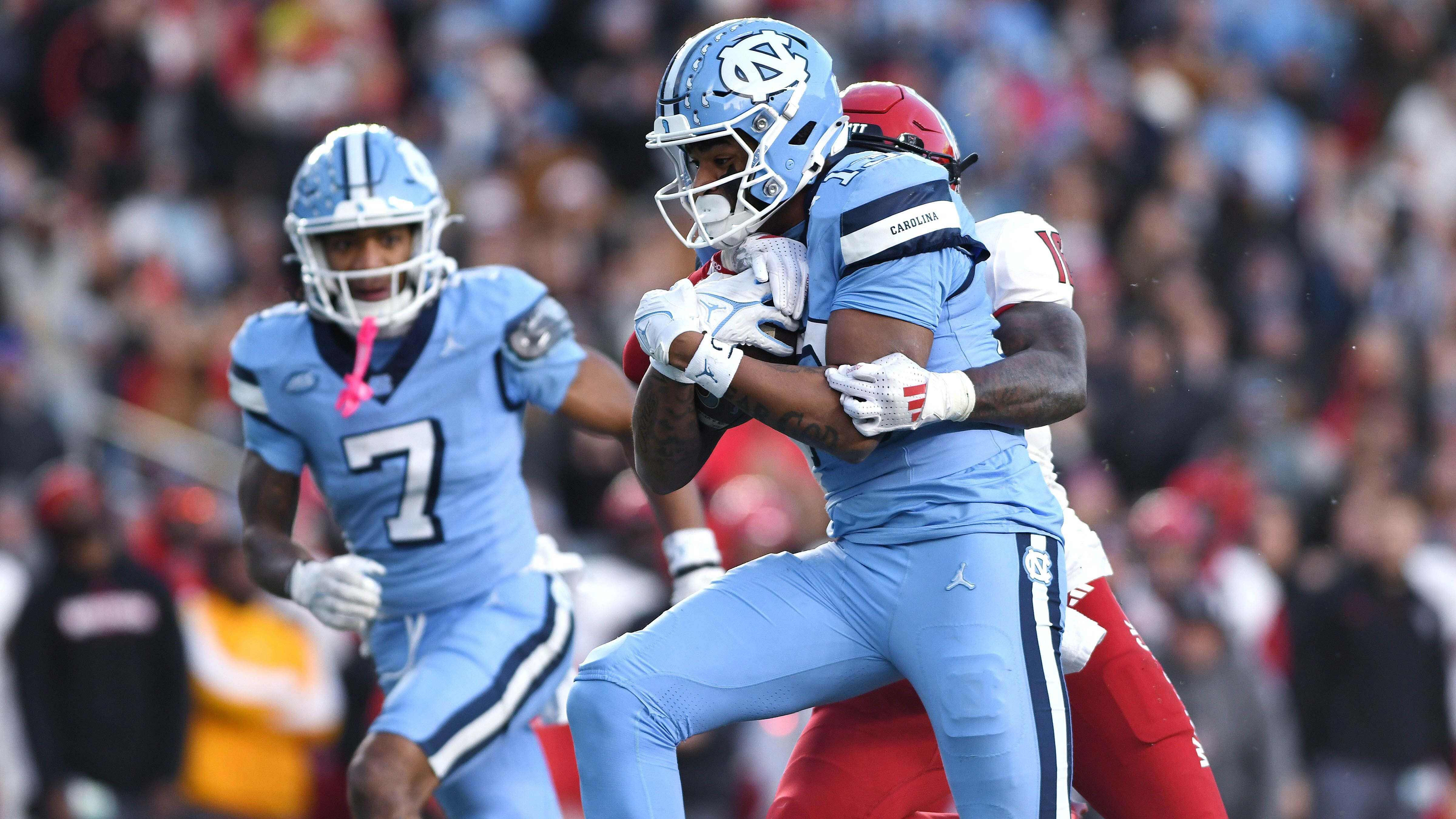 Running back Omarion Hampton did what he could in possibly his last game for Carolina (should he opt out of the bowl game) with two huge touchdowns: a career-long 75-yard scoring run in the first half and a 47-yard score on a shovel pass with 1:51 left in the game.
