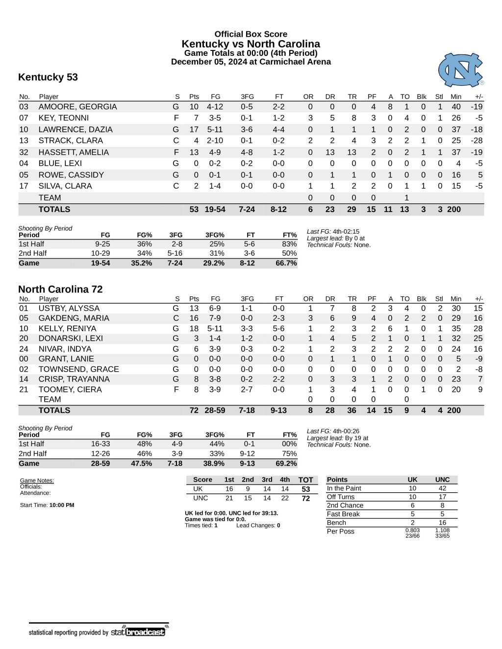 With balanced scoring, dominant inside play and relentless defense, the No. 16 Tar Heels earned an early-season signature victory by handing No. 14 Kentucky its first loss, 72–53, in the ACC/SEC Women’s Challenge.