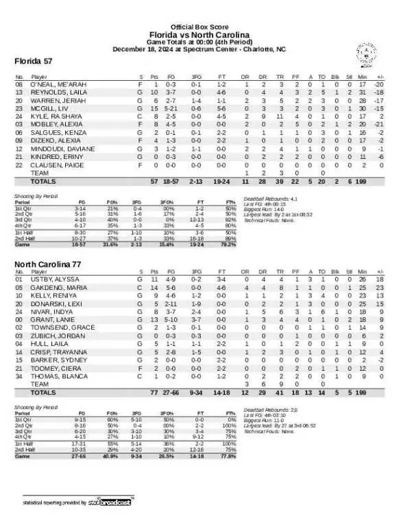 No. 19 UNC 77, Florida 57