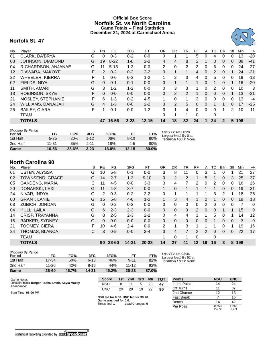 The No. 19 Tar Heels operated in good order in their final non-conference game, blasting visiting Norfolk State 90–47 on Saturday afternoon at Carmichael Arena.