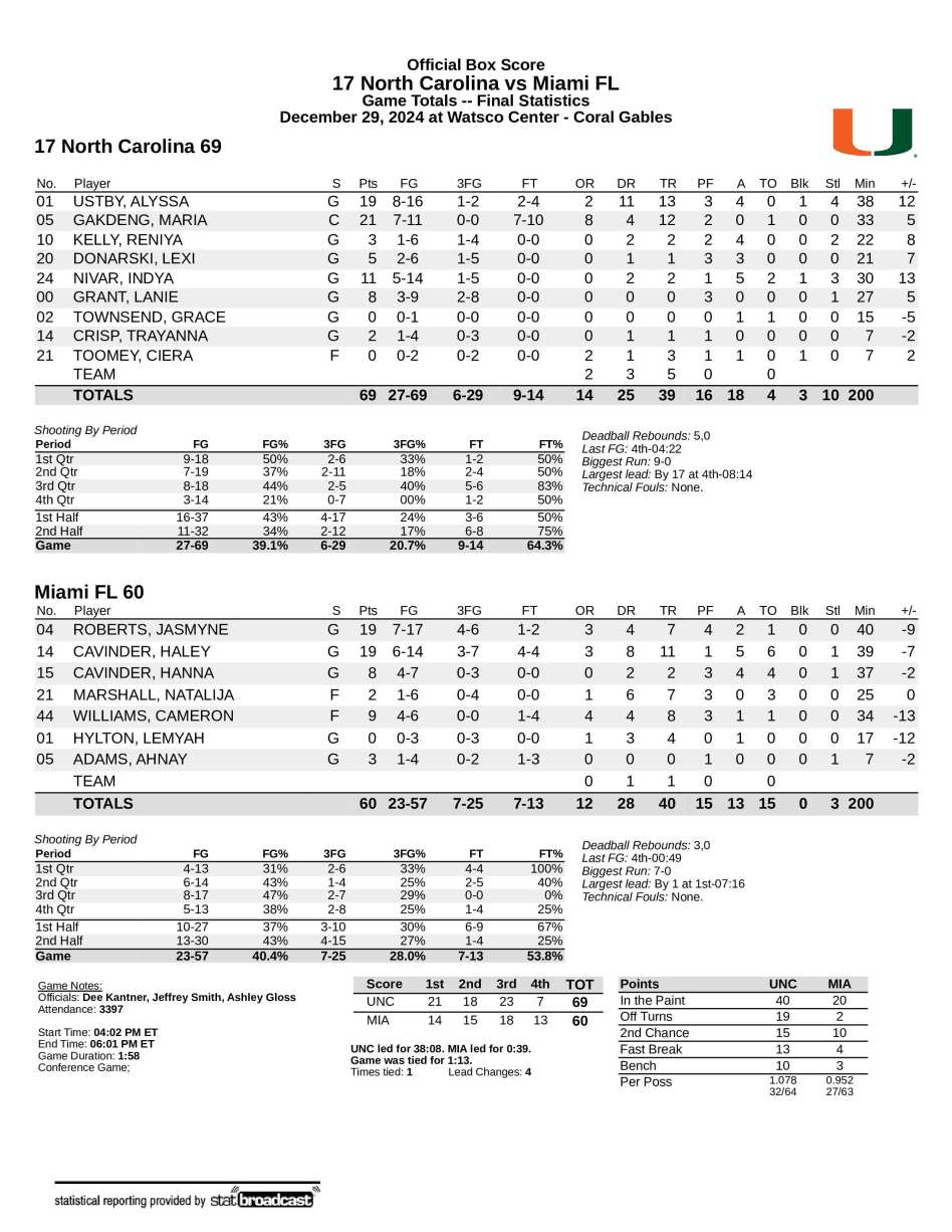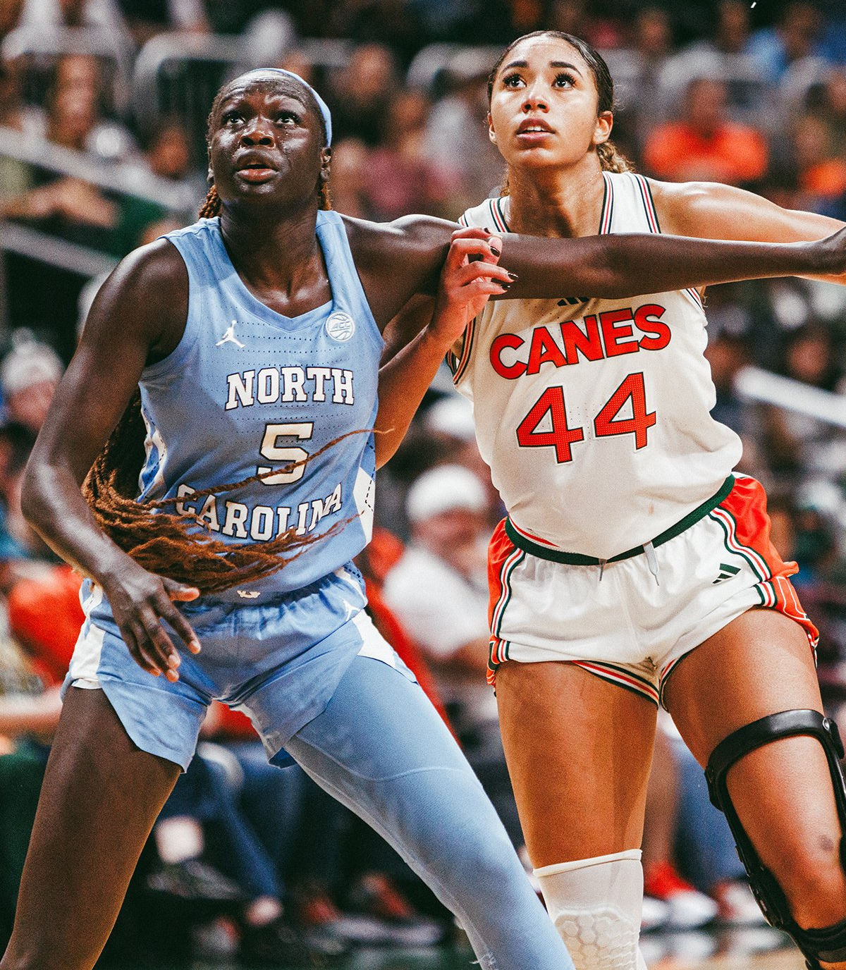 Miami closed within 56–45 before Lanie Grant’s 3-pointer for North Carolina’s final field goal of the third quarter.
