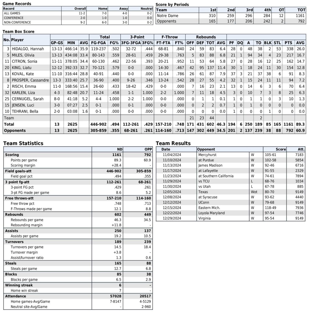Notre Dame season statistics