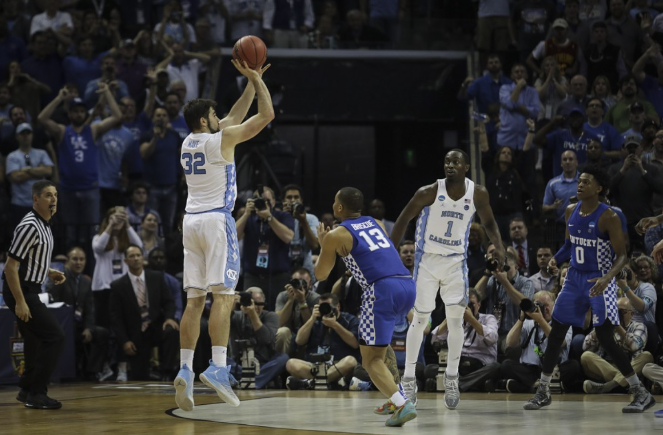 The most memorable UNC-UK meeting, of course, was 2017 when Luke Maye’s shot (top photo) beat Kentucky 75–73 in the South Regional final in Memphis on the Tar Heels’ road to the national championship.