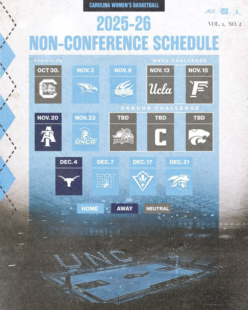 After many elements of North Carolina’s women’s basketball nonconference schedule trickled out in the last few weeks, it all became official on Tuesday, and it includes matchups against a Tar Heel legend, two Las Vegas games and a chance for another title in a tropical venue.