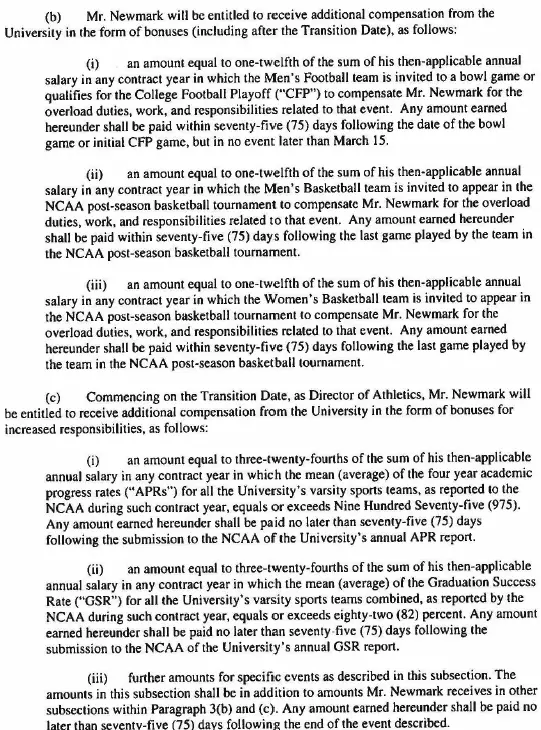 Additionally, Newmark earns $20,000 if UNC finishes in the top 10 of the Director’s Cup and $40,000 for a top-5 finish — feats the school routinely accomplishes.