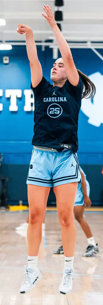 She competed many times against much more experienced players, including former Carolina star and WNBA first-round draft pick Stephanie Watts, who is eight years older. Watts, whose UNC career ended in 2021, played for a Spanish team, and their teams met once in Belgium and once in Spain.