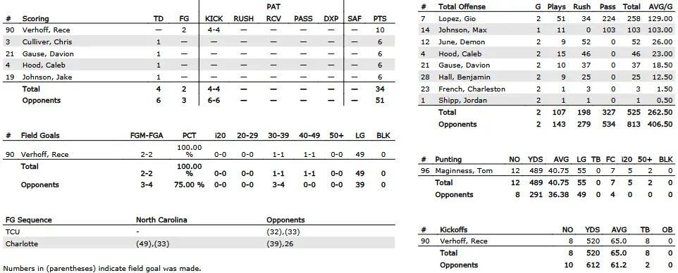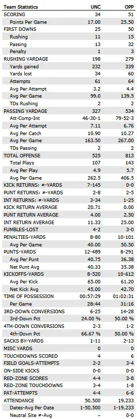 | Category | UNC (FBS Rank) | Richmond (FCS Rank) |