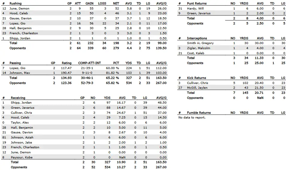 | Total offense | 262.5 (124) | 226.5 (101) |