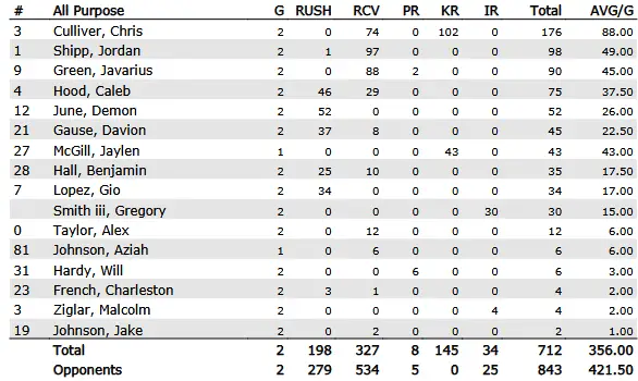 Running back: 4 Caleb Hood | 28 Benjamin Hall | 21 Davion Gause