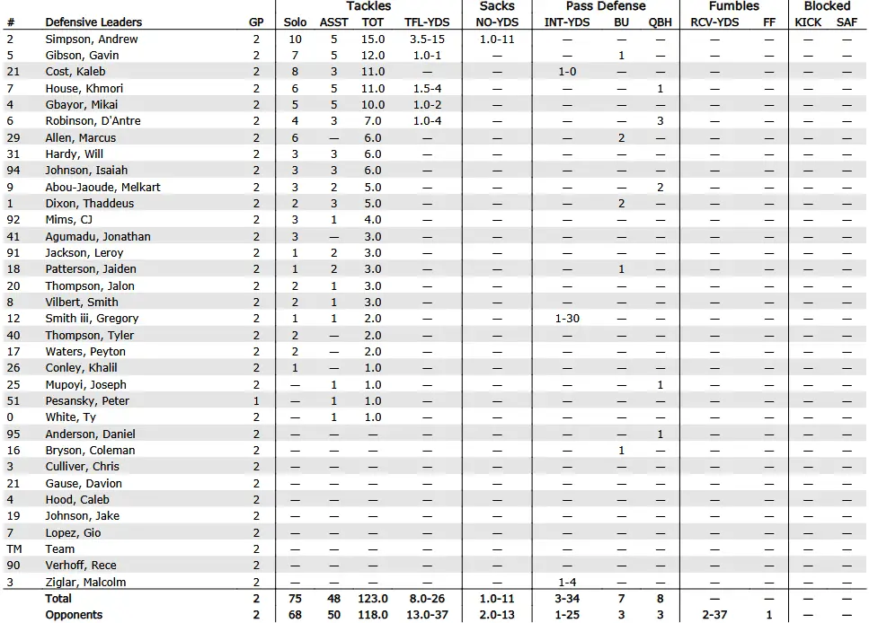 Mike linebacker: 2 Andrew Simpson | 4 Mikai Gbayor