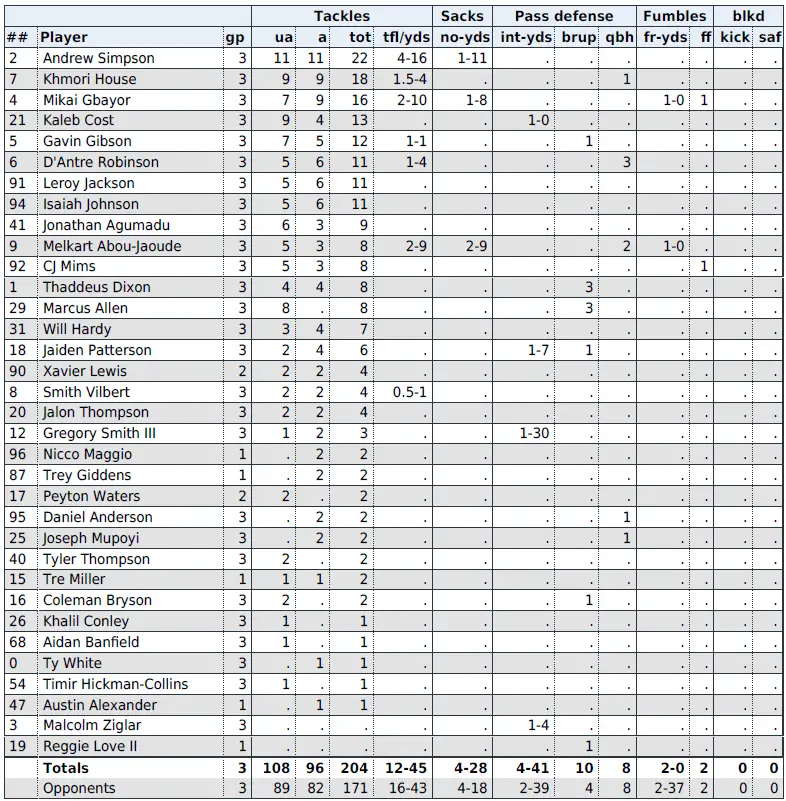• 35–11 on Nov. 4, 2024, at Florida State: Omarion Hampton had 269 total yards and five touchdowns.