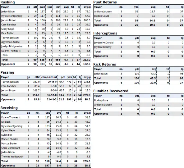 Running hot — UCF rushed for seven TDs in the 68–7 win last Saturday over N.C. A&T, one shy of the school record. Jaden Nixon and Jacurri Brown both went over 100 yards. Nixon had a 96-yard kickoff return for a touchdown, runs of 87 and 66 yards and 252 all-purpose yards (first Knight over 250 since 2021).