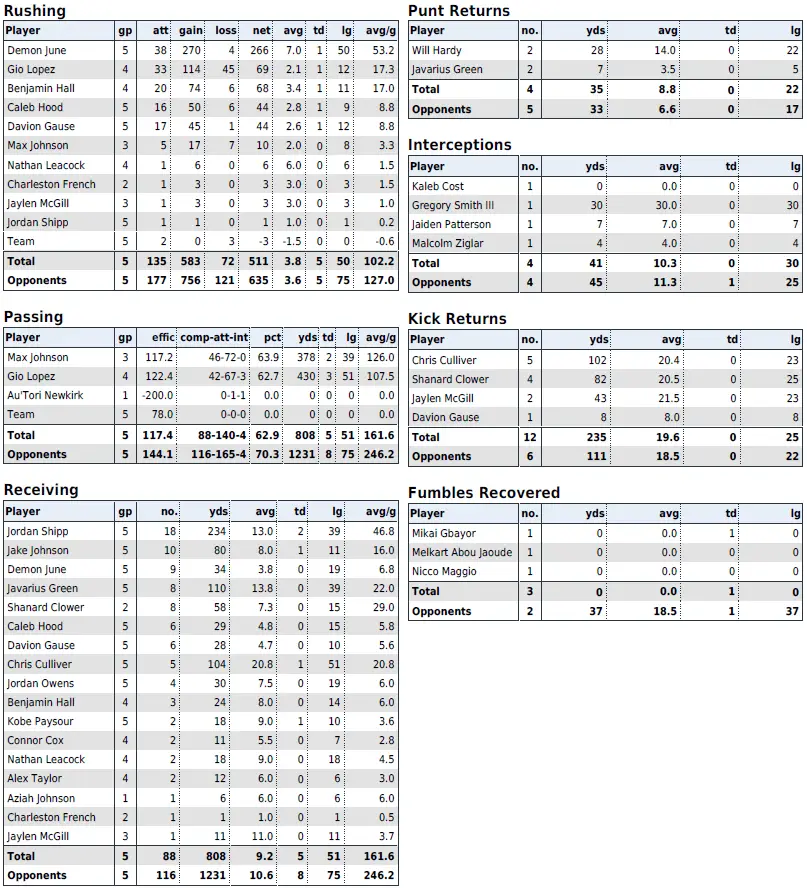 — Bears running back Kendrick Raphael, who ran for two touchdowns in the loss to Duke, has 414 rushing yards (8th in the ACC) on 93 carries (2nd in the ACC; 33rd in the country).