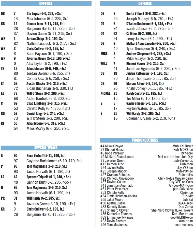 — UNC quarterback Gio Lopez, who missed the Clemson game, is not listed on the initial ACC availability report released Wednesday night by the ACC (listed below), so presumably has been practicing and could start.
