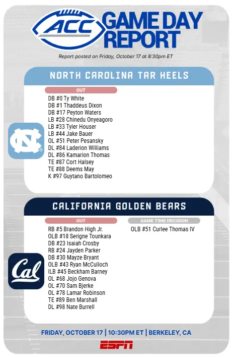 North Carolina (2–3, 0–1 ACC) at California (4–2, 1–1)