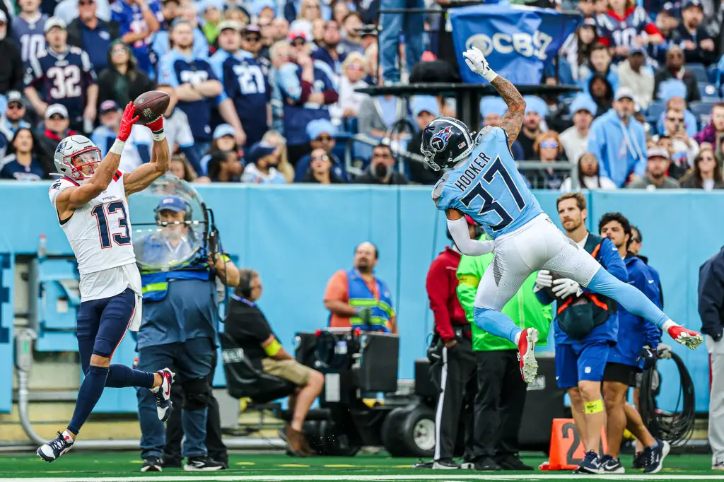 On the Patriots’ opening drive of the second half, Maye again connected with Hollins, this time for 27 yards, the second-longest Patriots play for the game. In addition to Hollins’ two catches (on two targets) for 49 yards, he had one carry for four yards.