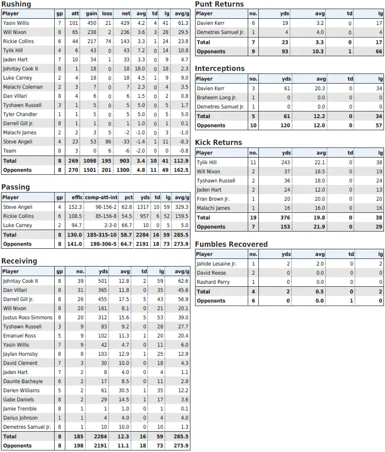 | 25.4 (83) | Scoring offense | 18.3 (124) |