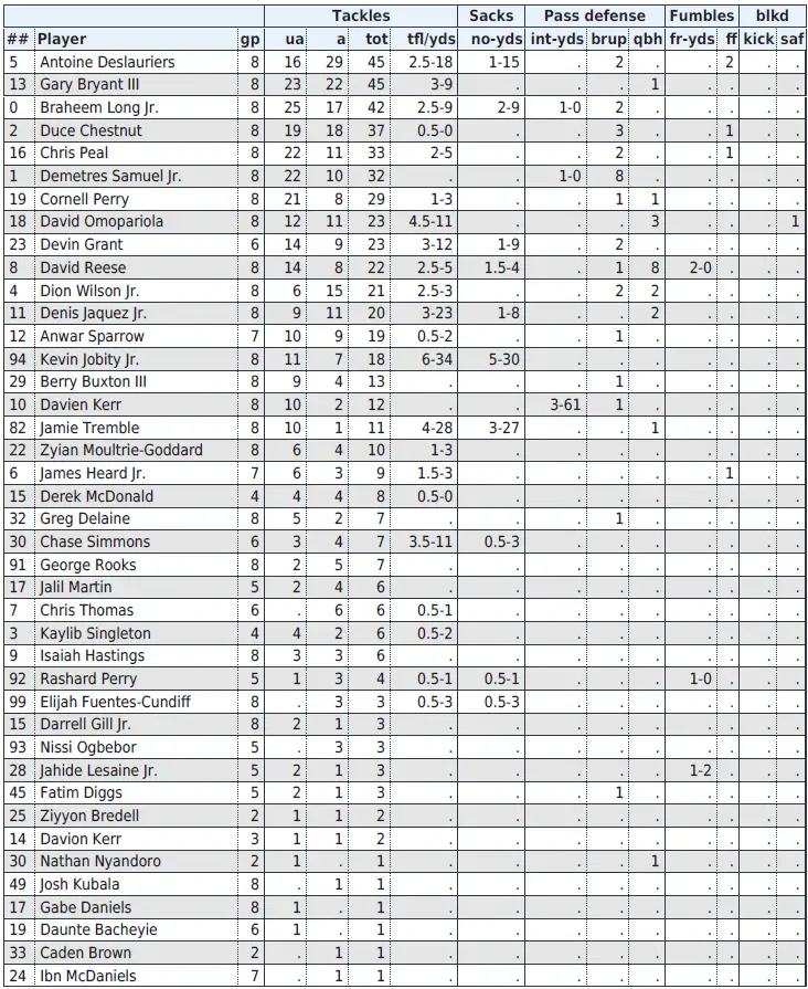— Carolina linebacker Khmori House leads UNC with 41 tackles.