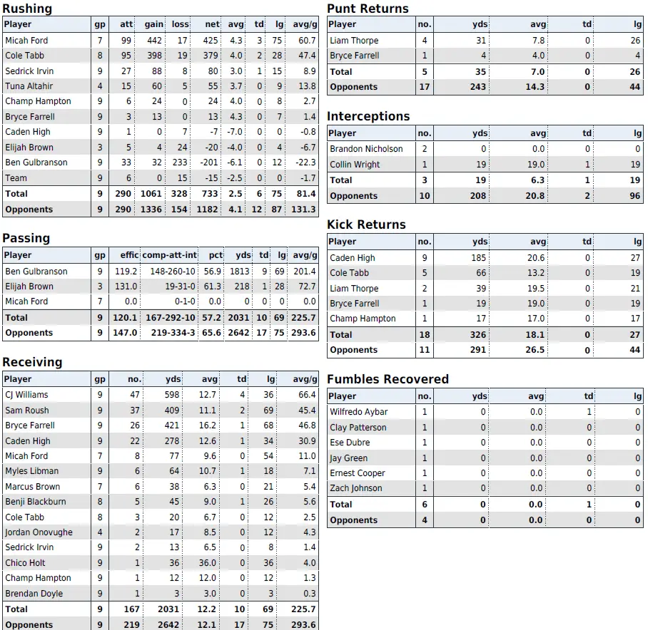 - QB Elijah Brown: 19 of 31, 218 yards, 1 TD, 0 INT