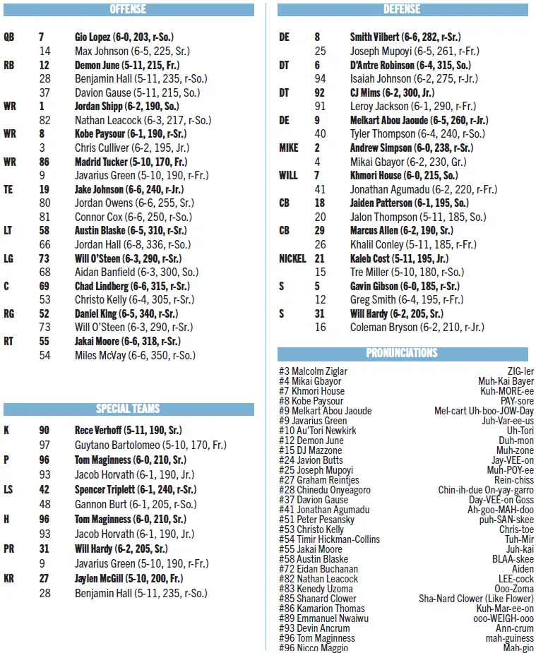 - QB Gio Lopez: 1,021 yards, 6 TDs, 5 INTs, 63.1% completion