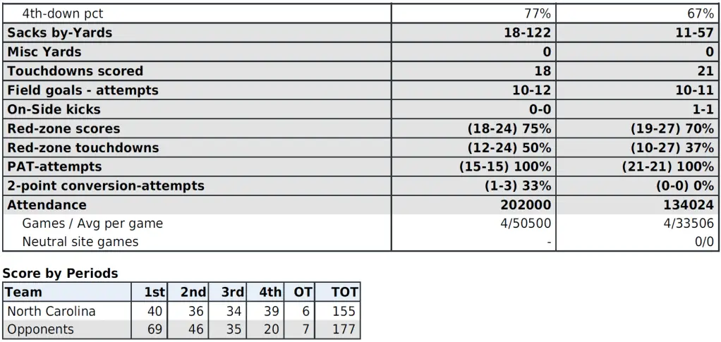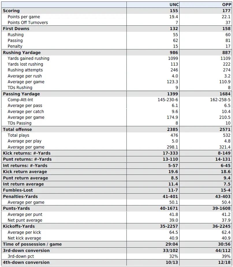 — UNC opponents have averaged just 2.66 yards per rush, the best in the ACC.
