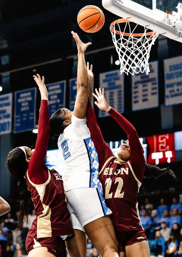 Nivar scored 13 points — with all six of her field goals coming on layups or inside buckets — grabbed seven rebounds, dished three assists and swiped six steals. Carolina scored 28 points off 27 turnovers and outscored Elon 23–1 in fast-break points.
