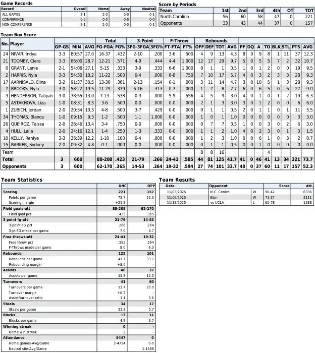 — Senior guard Indya Nivar leads the team in scoring at 12.3 points per game. Ciera Toomey, the only other Tar Heel averaging double-figure points with 10.7, leads the team in rebounding at 9.7 per game.