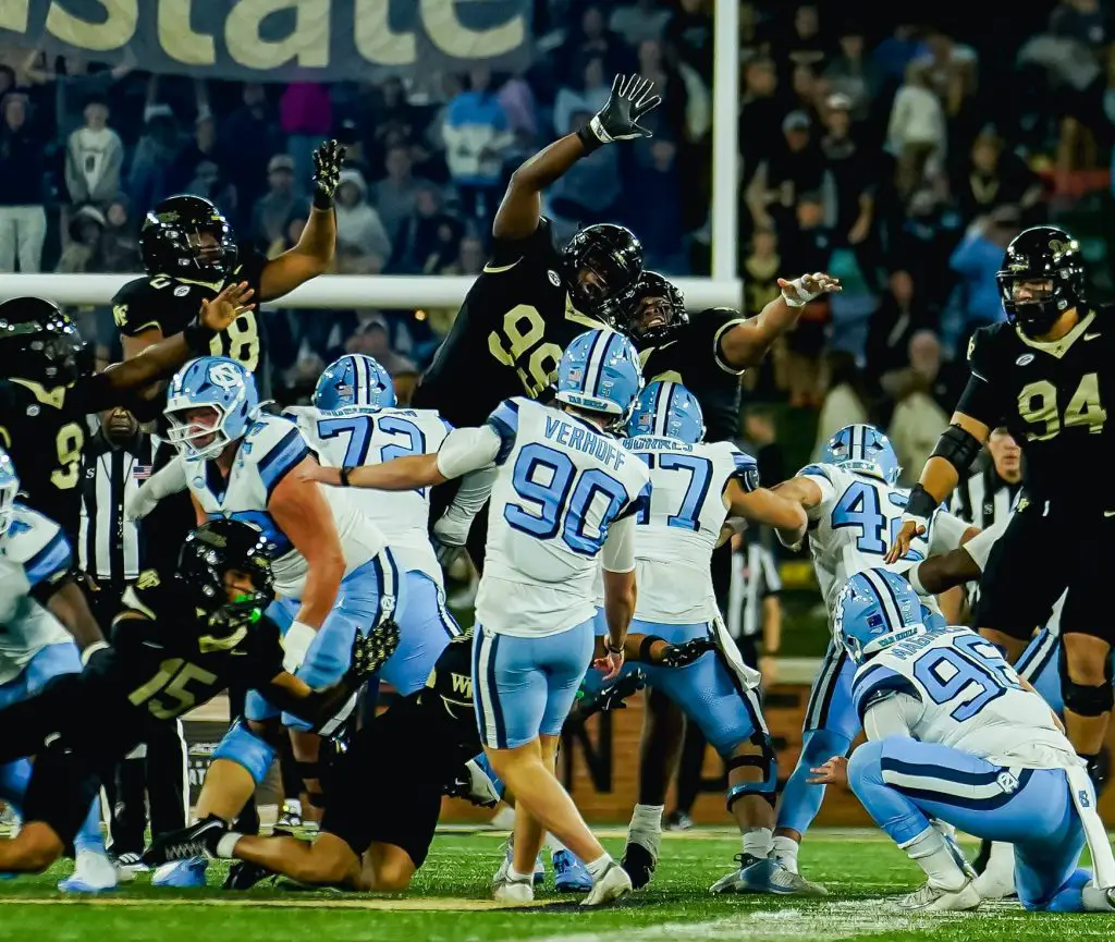 The senior place-kicker drilled four field goals, including a school-record 57-yarder as the first-half clock expired, in North Carolina’s 28–12 loss to Wake Forest.