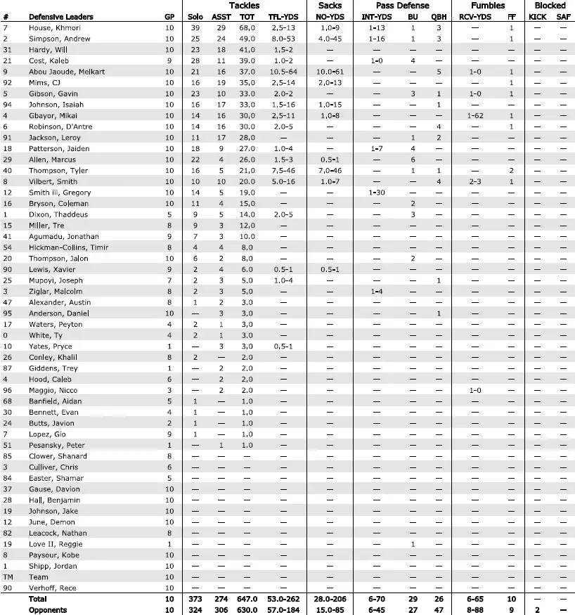 — Defense ranks 119th nationally (419.8 yards allowed: 273.3 pass, 146.5 rush)