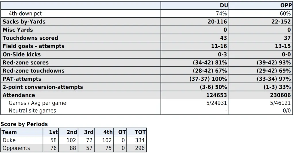 — Duke’s 432.7 yards of offense per game is fourth-best in the ACC.